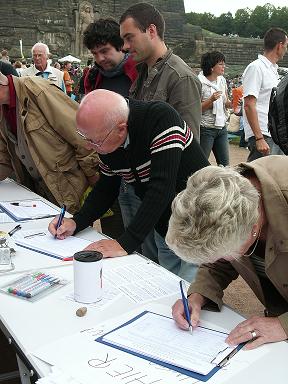 einem Infostand - sozusagen vorfristig - die öffentliche Sammlung von